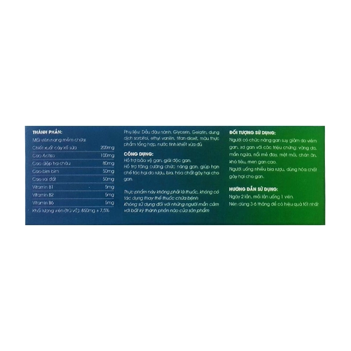 - Chiết xuất cây kế sữa: 200mg