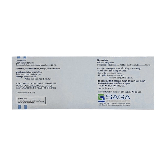Omsergy 20mg Saga Lifesciences 10 vỉ x 10 viên (Omeprazole)